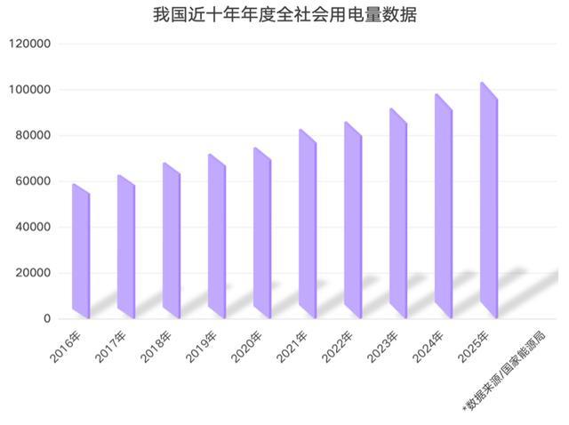 在2025年,中国全社会用电量初度冲突10万亿千瓦时大关,这意味着什么?