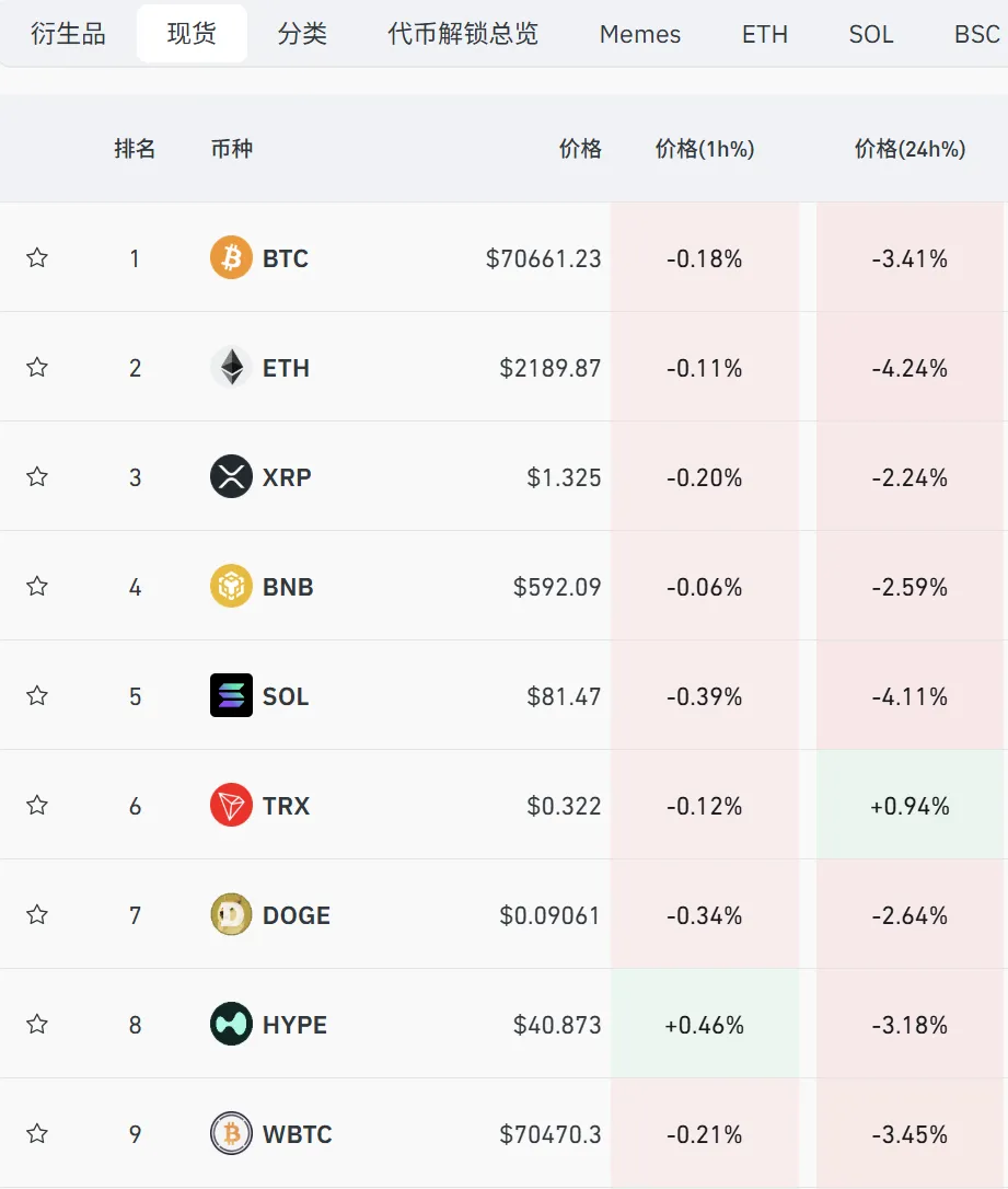 4月13日早间,比特币价钱再度走低,日内一度跌至70500好意思元隔邻。罢休发稿,比特币价钱约为70600好意思元。